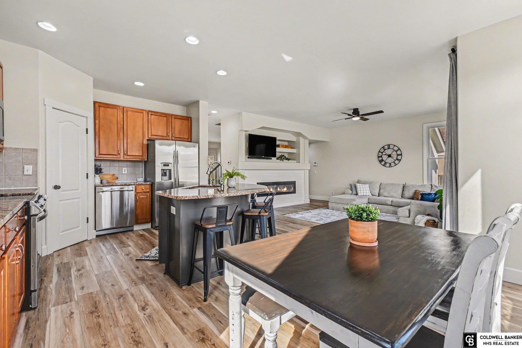 Step inside this beautifully updated 4 bedroom home near Hwy 75 and shopping, where space and comfort come together. The main level shines with new flooring in 2024, granite countertops, stainless steel appliances, pantry, breakfast nook, and formal dining and living rooms ideal for gathering. The family room features an updated electric fireplace for cozy evenings. A large office above the garage and a remodeled lower level with bonus flex room offer versatile space for work, fitness, or entertaining. Upstairs, enjoy second floor laundry with utility sink, washer and dryer included. The primary suite includes a 3/4 bath and walk in closet. Major updates include new roof in 2023, exterior paint with cedar accents in 2024, furnace and A/C in 2021, and radon mitigation in 2016. Flat backyard with refinished deck, patio, and 6 foot wood privacy fence. American Home Shield ShieldPlus warranty provided.