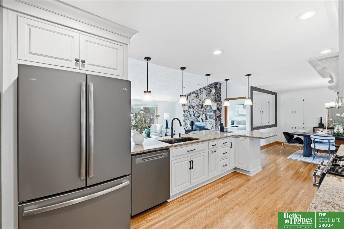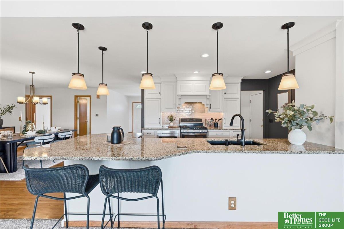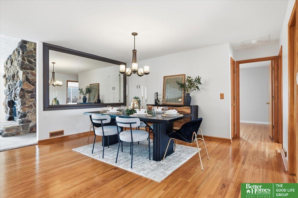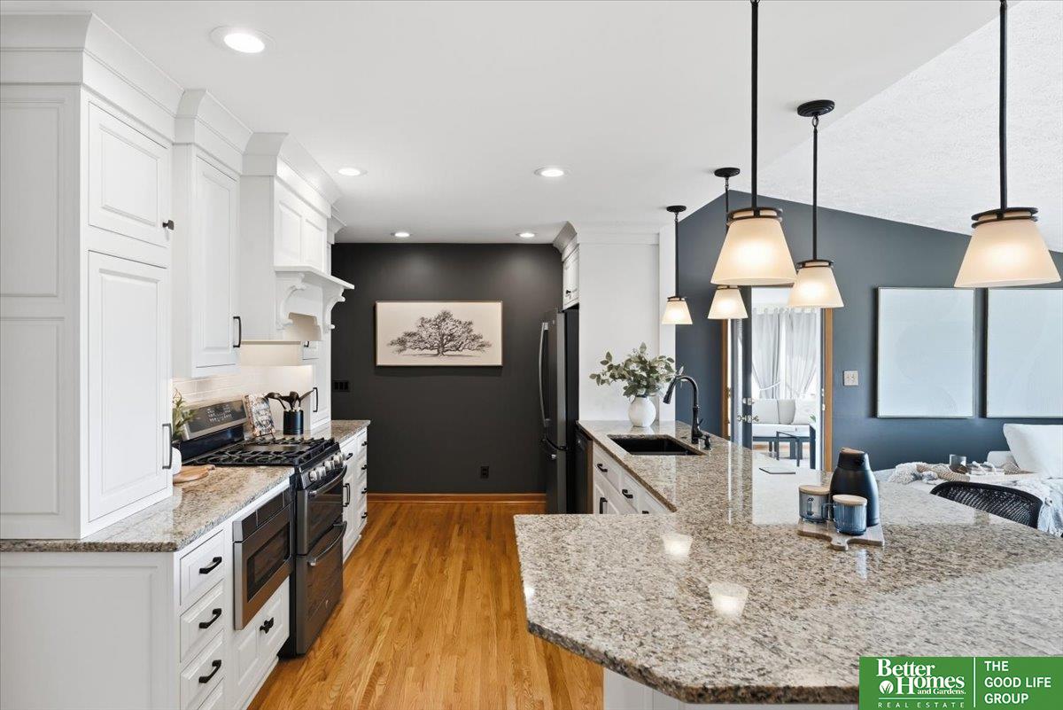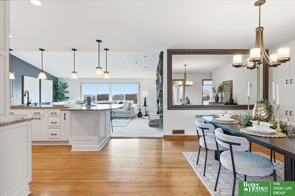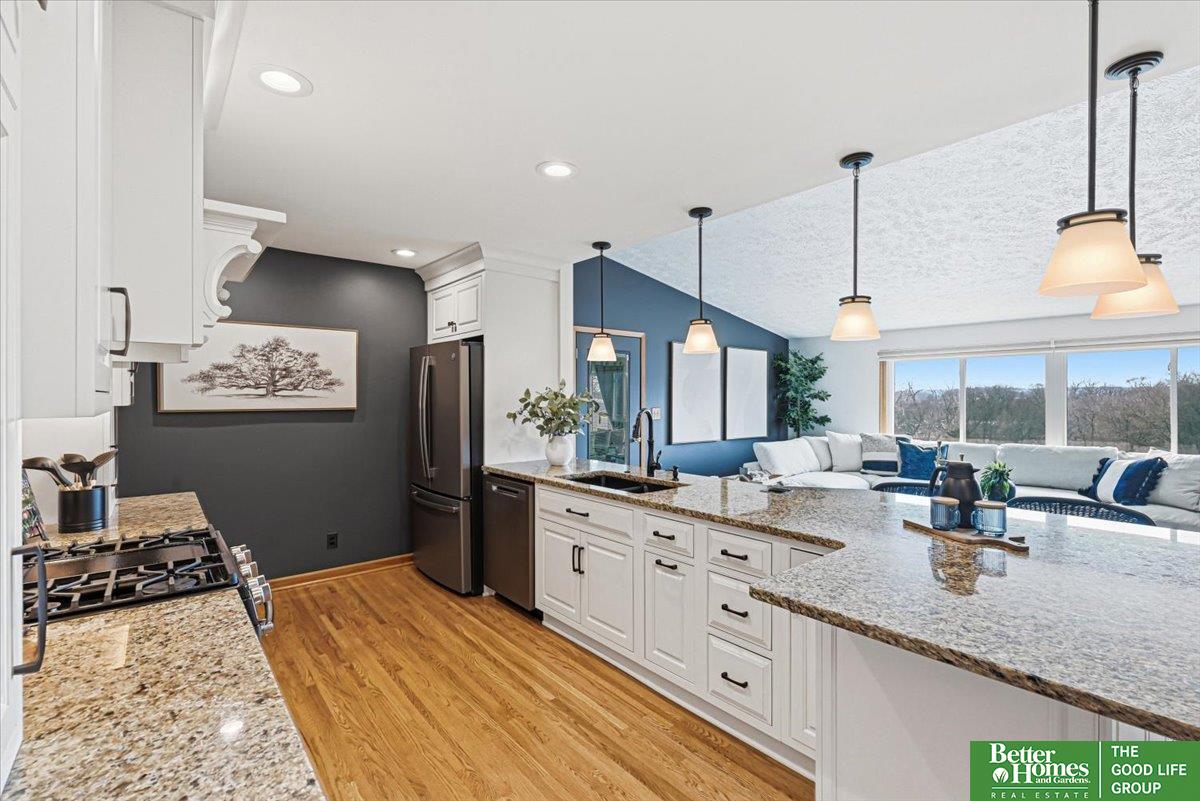 Welcome to this thoughtfully updated Ponca Hills walkout ranch, cherished by the same owners for 20 years! The main floor offers a spacious primary bedroom with walk-in closet and 3/4 bath, plus two bedrooms and full bath, all recently remodeled. The open kitchen flows into a vaulted family room with cozy gas fireplace and spectacular views. A bright 3-season room leads to the beautifully landscaped backyard - also accessible from basement walkout - complete with gas fire pit and 220 hookup for a hot tub. Nestled in almost half an acre, a private oasis perfect for relaxing or entertaining! Lower level features a large rec room, indoor workshop, laundry area, two bonus rooms, and abundant storage. Over 2800 finished sqft with many upgrades including Craneboard siding, motorized shades, gutter guards, AC ’23 + ’25, newer windows, and so much more! Pre-inspected, conveniently located by the interstate, yet tucked among the trees. Find your peace in Ponca Hills and book your showing today!