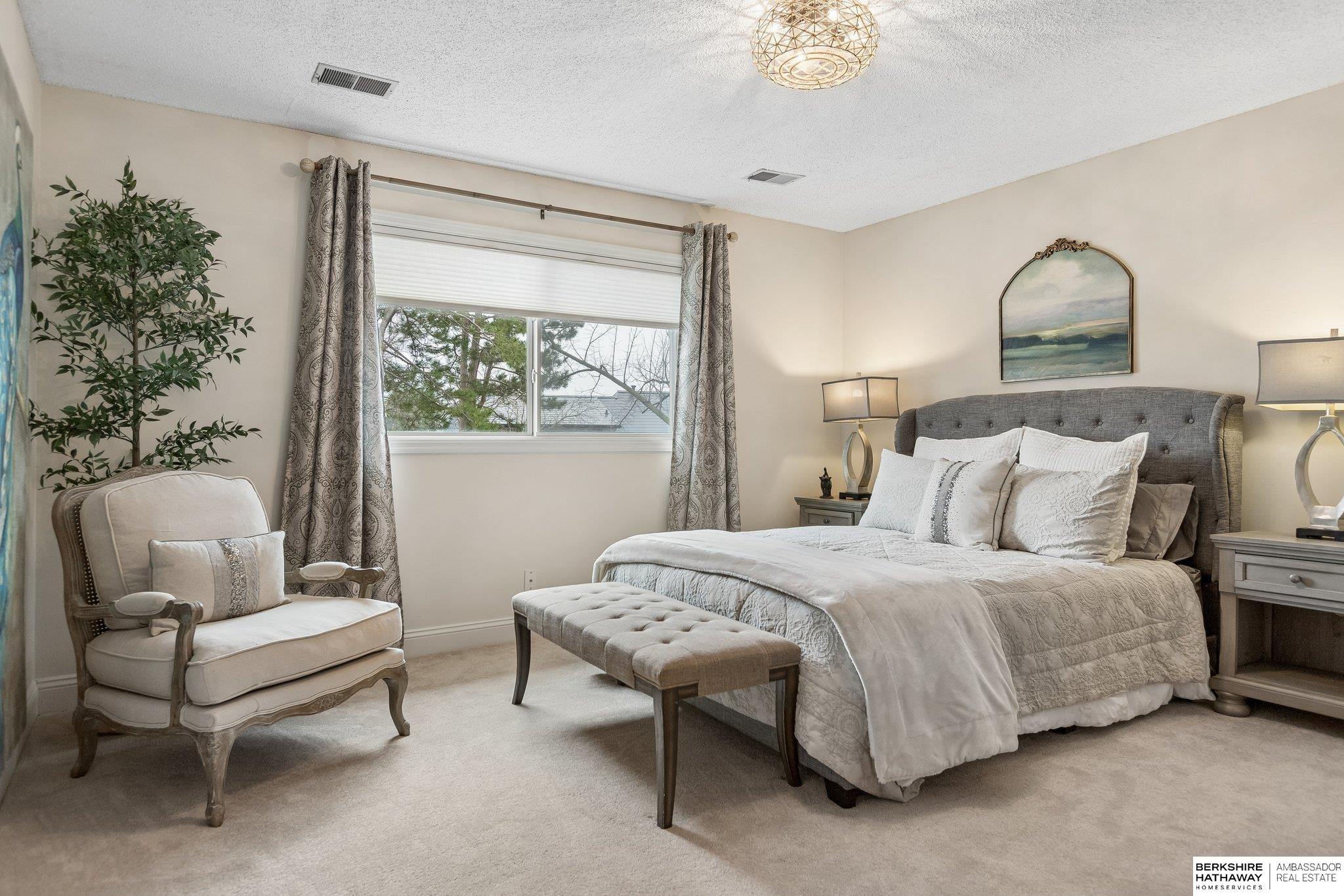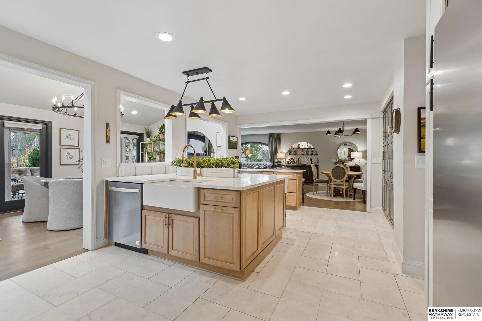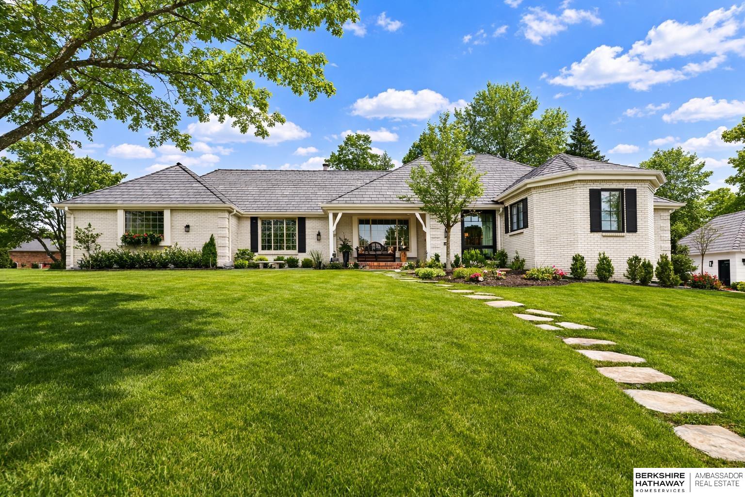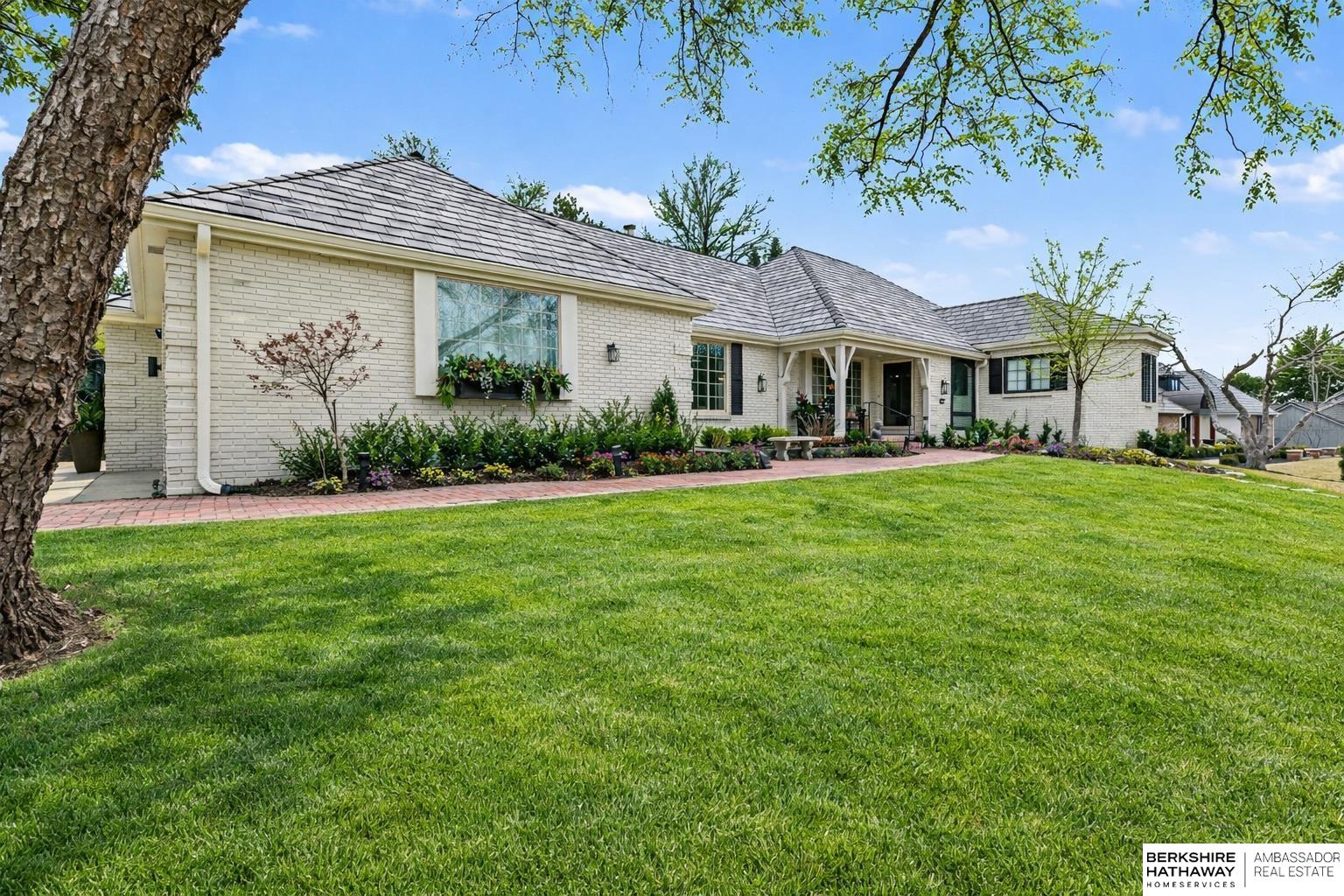 Welcome to a rare opportunity in Omaha’s coveted Regency neighborhood. This stately brick 1.5-story walkout ranch sits on a beautifully landscaped corner lot offering privacy and tranquility. Completely remodeled top to bottom from 2023–2025, the home features close to 5,300 finished sq ft with 5 bedrooms, 5 baths, and a 4-car garage. The reimagined main floor primary suite offers a spacious bedroom, spa-like bath, and large walk-in closet. Upstairs includes 3 generous bedrooms-one with ensuite and two with Jack-and-Jill bath-plus a cedar closet, third laundry, and added storage. The stunning kitchen boasts all-new cabinetry, appliances, countertops, flooring, and lighting. Main-floor office, backyard access & two laundry spaces add convenience. Finished lower level includes a large rec room, bedroom, workout room, wet bar, and storage. DaVinci roof (2016). Enjoy HOA pool, tennis courts, and clubhouse in one of Omaha’s most desirable communities. Exterior photos are summer renderings.