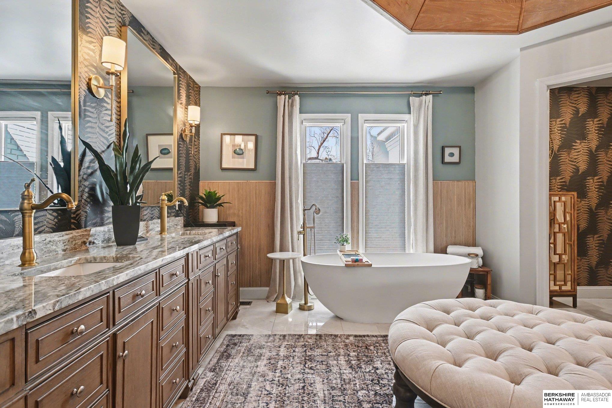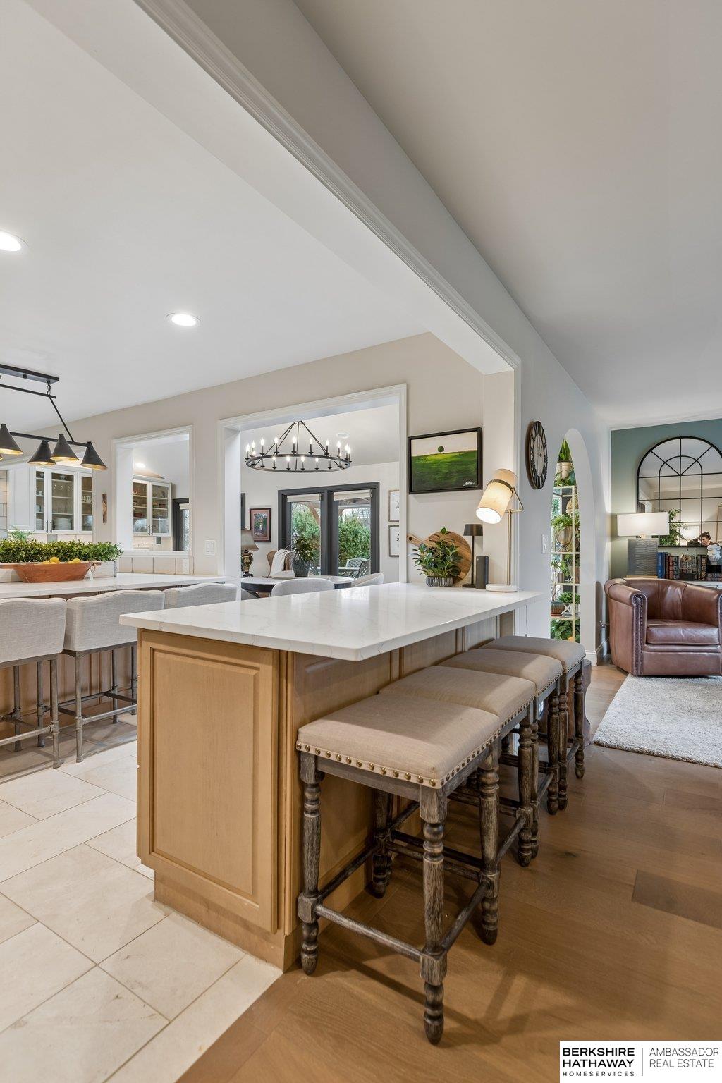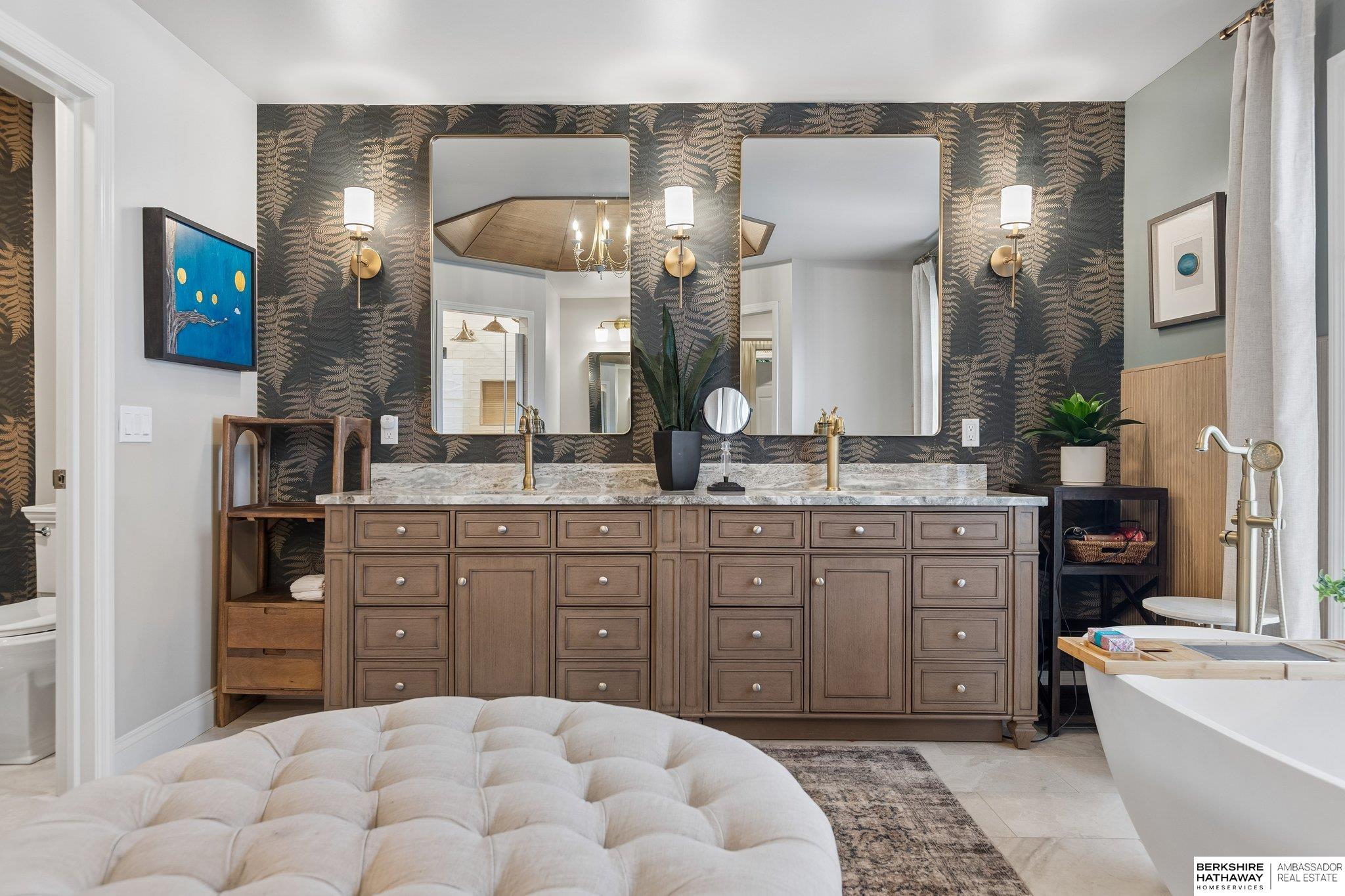 Welcome to a rare opportunity in Omaha’s coveted Regency neighborhood. This stately brick 1.5-story walkout ranch sits on a beautifully landscaped corner lot offering privacy and tranquility. Completely remodeled top to bottom from 2023–2025, the home features close to 5,300 finished sq ft with 5 bedrooms, 5 baths, and a 4-car garage. The reimagined main floor primary suite offers a spacious bedroom, spa-like bath, and large walk-in closet. Upstairs includes 3 generous bedrooms-one with ensuite and two with Jack-and-Jill bath-plus a cedar closet, third laundry, and added storage. The stunning kitchen boasts all-new cabinetry, appliances, countertops, flooring, and lighting. Main-floor office, backyard access & two laundry spaces add convenience. Finished lower level includes a large rec room, bedroom, workout room, wet bar, and storage. DaVinci roof (2016). Enjoy HOA pool, tennis courts, and clubhouse in one of Omaha’s most desirable communities. Exterior photos are summer renderings.