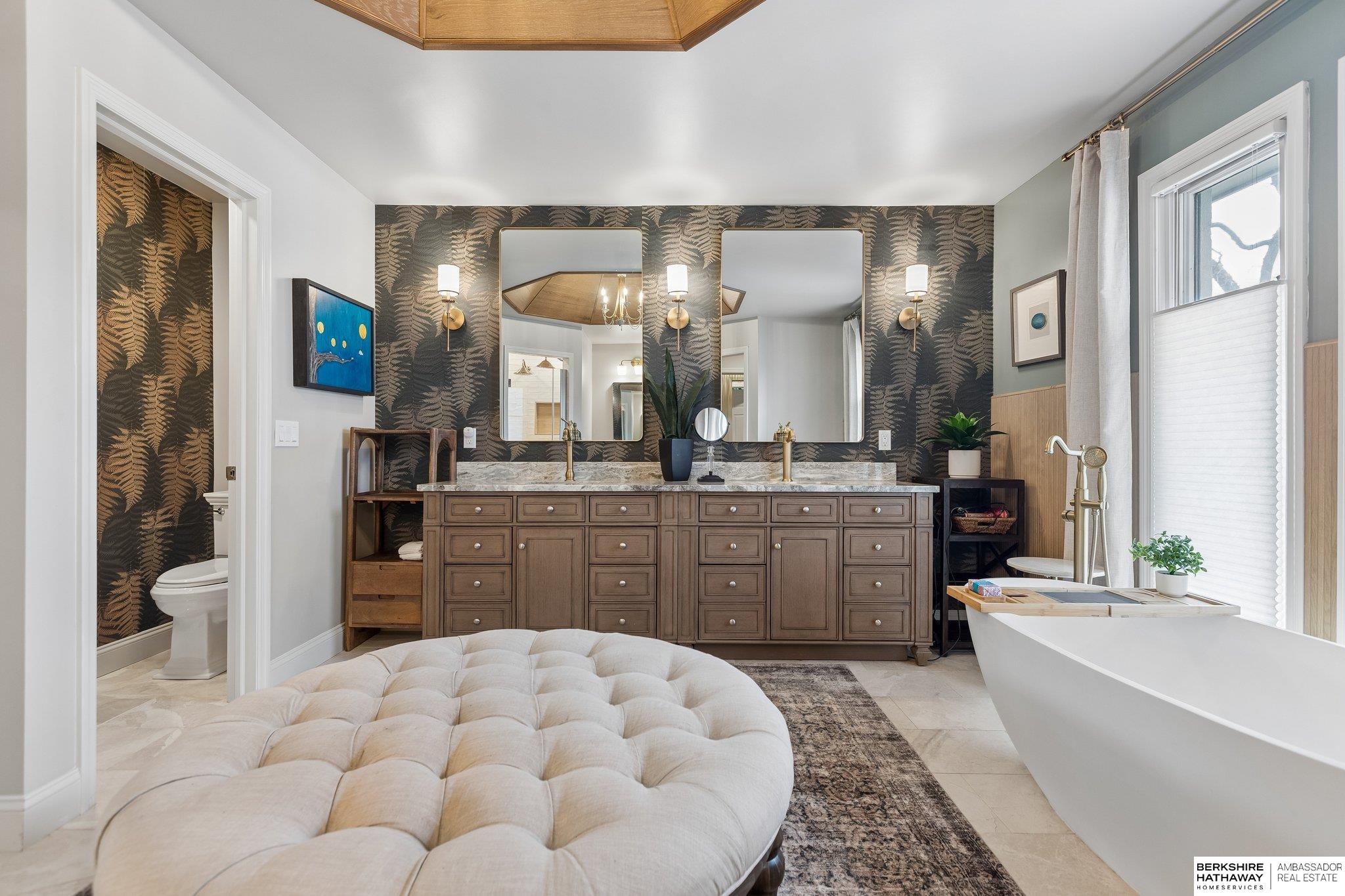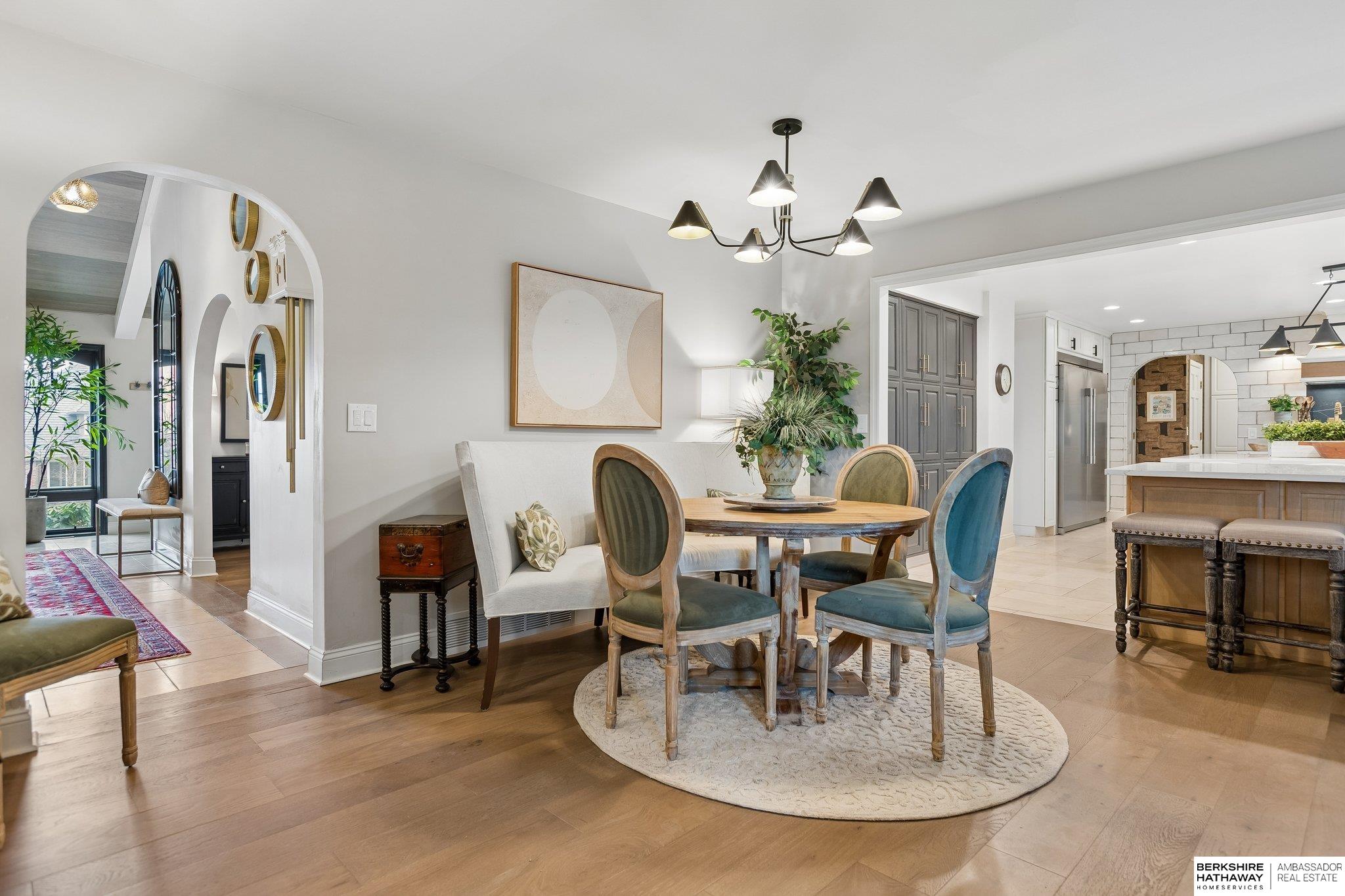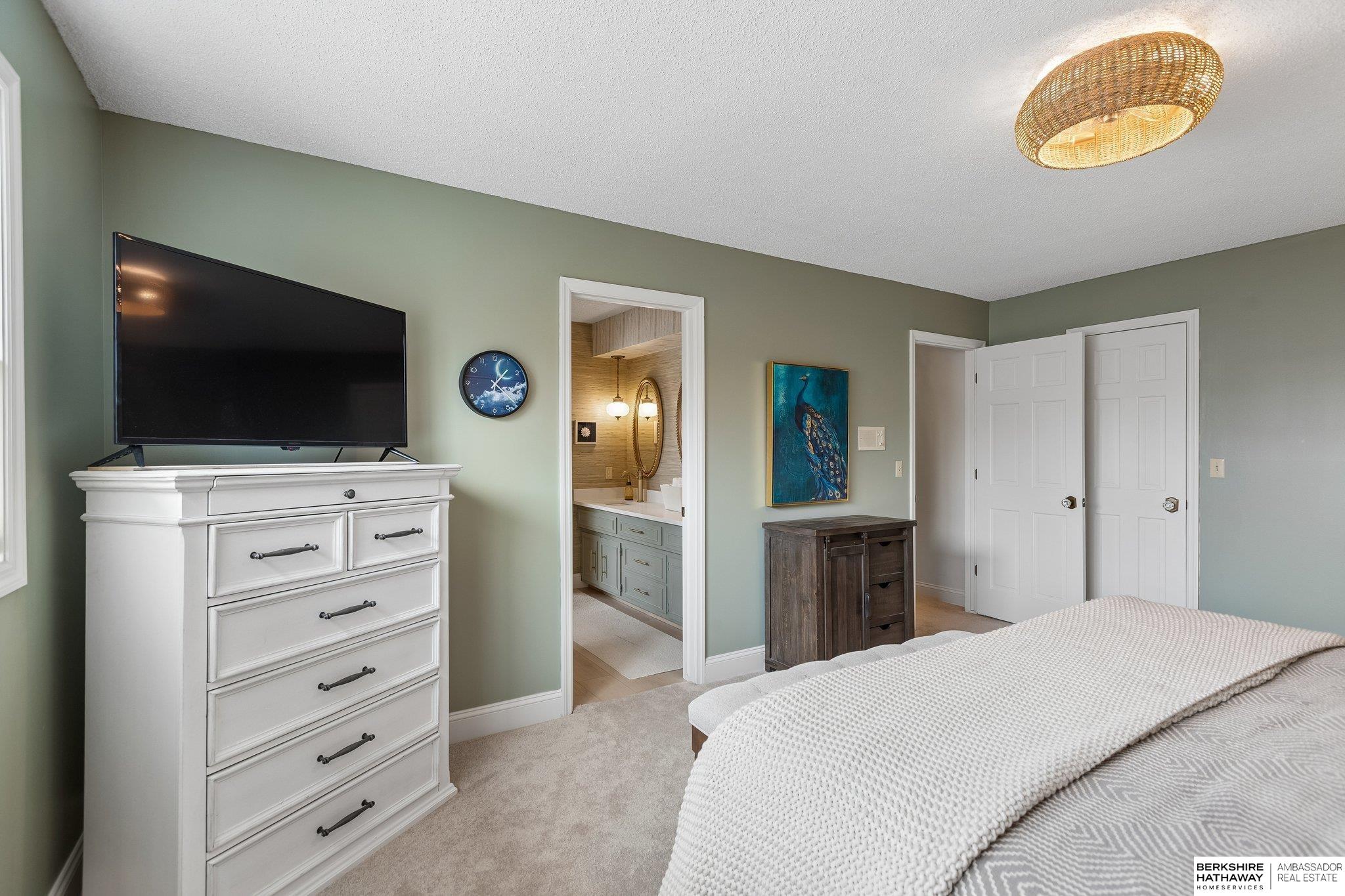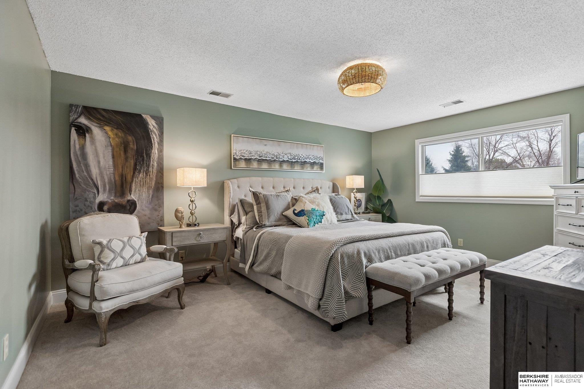 Welcome to a rare opportunity in Omaha’s coveted Regency neighborhood. This stately brick 1.5-story walkout ranch sits on a beautifully landscaped corner lot offering privacy and tranquility. Completely remodeled top to bottom from 2023–2025, the home features close to 5,300 finished sq ft with 5 bedrooms, 5 baths, and a 4-car garage. The reimagined main floor primary suite offers a spacious bedroom, spa-like bath, and large walk-in closet. Upstairs includes 3 generous bedrooms-one with ensuite and two with Jack-and-Jill bath-plus a cedar closet, third laundry, and added storage. The stunning kitchen boasts all-new cabinetry, appliances, countertops, flooring, and lighting. Main-floor office, backyard access & two laundry spaces add convenience. Finished lower level includes a large rec room, bedroom, workout room, wet bar, and storage. DaVinci roof (2016). Enjoy HOA pool, tennis courts, and clubhouse in one of Omaha’s most desirable communities. Exterior photos are summer renderings.