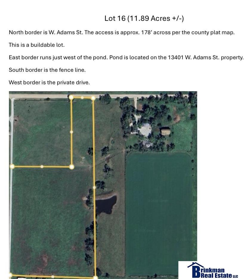 Malcolm School District - 11+ acre acreage lot located 1/2 mile from the paved NW 126th St. and W. Adams St. Just 1/2 mile from Pawnee Lake area. No covenants. Pasture had been previously leased to a local farmer. Driveway will be on W. Adams St. Property is located just west of 13401 W. Adams St. (which is a "Coming Soon" acreage listing). Taxes are estimated. See attached aerial photo and plat map. Please do not drive in the pasture or on the private road. See aerial picture with border lines which are approx, for reference only. Plat map attached. **Lot 15 next to this one is for sale with 5+ acres—see MLS 22602852